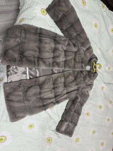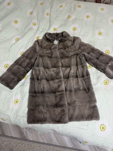 Шуба из норки, темный графит/черный бриз. Классический прямой крой до