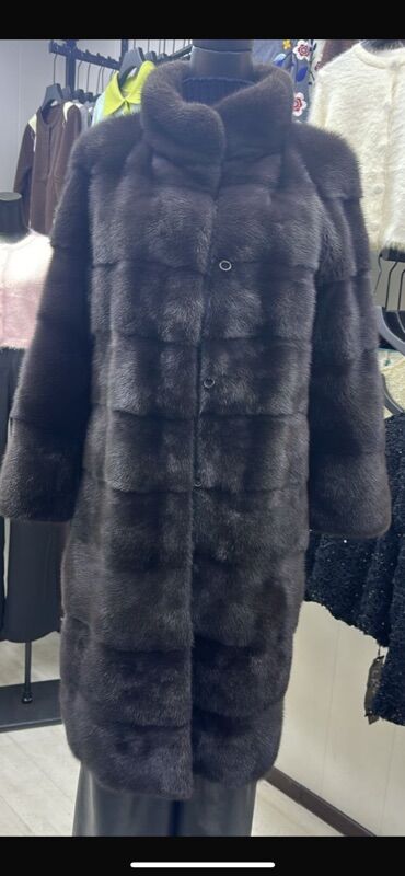 Шуба из норки, темный графит/черный бриз. Классический прямой крой до