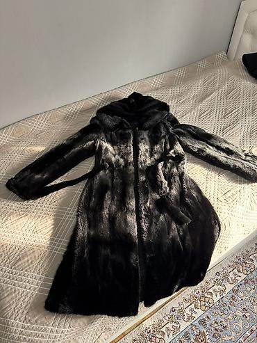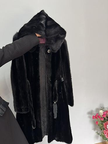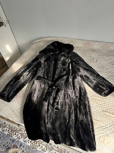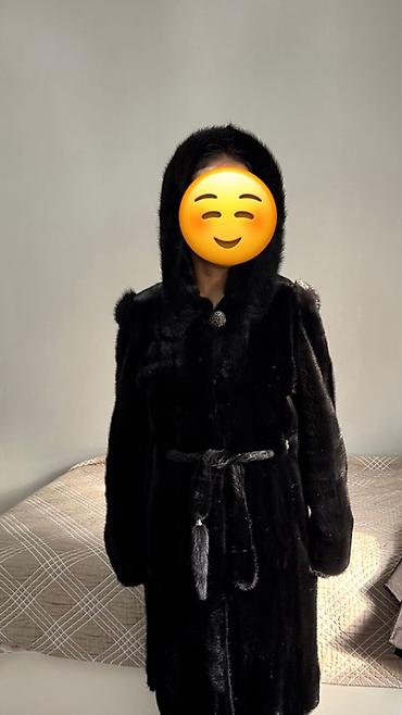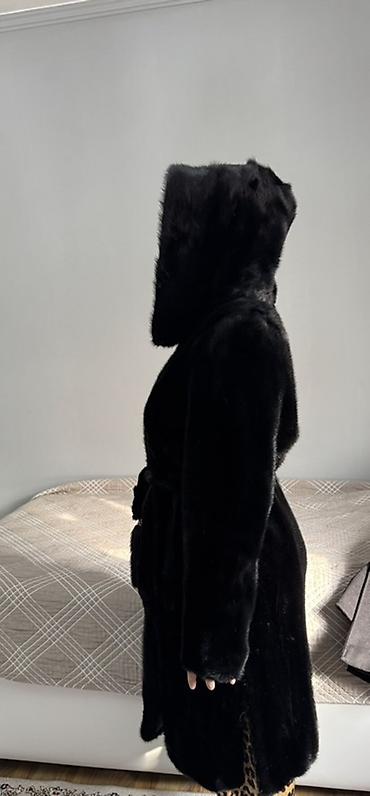 Шуба из норки с капюшоном, черного цвета.