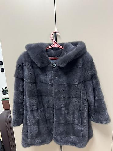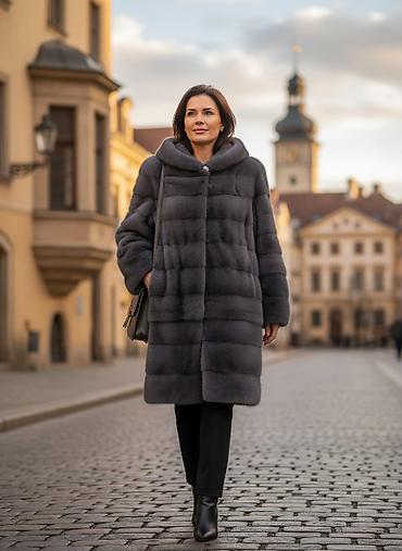 Шуба из норки с капюшоном, графитовый цвет.