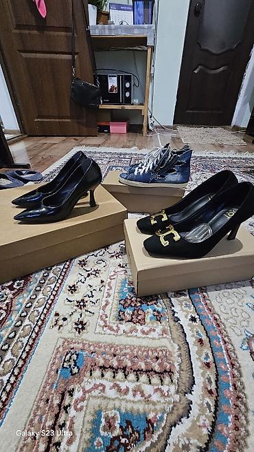 Пары показаны на коробках. Размеры: у замшевых лодочек — 37 (маркировка видна на фото). Для остальных размер не указан.