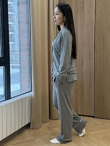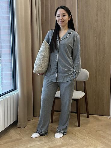 Женский домашний костюм/пижама цвета графит. материал : вискоза размер : хл штаны на 48-50 , а кофта как будто на 42-44 , кофта маломерит, продают из за того что размер не подошёл , могу отдел...