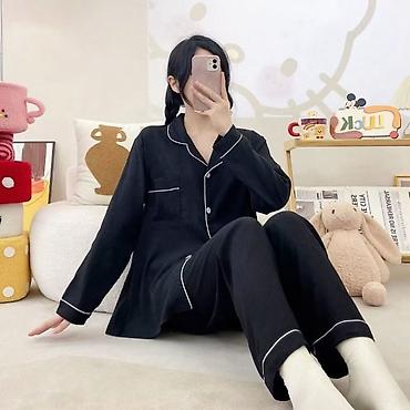 - Детали: пуговицы в тон, ровные швы, эластичный пояс на брюках.