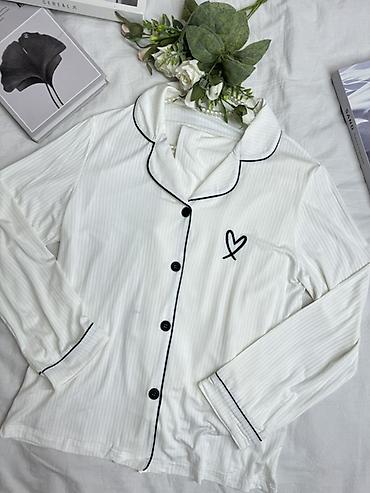 - Верх на пуговицах с отложным воротником, контрастным кантом и вышивкой-сердцем на груди.