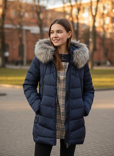Женское утеплённое пальто-пуховик. - Длина: ниже колена (mid-length), прямой свободный крой. - Цвет: светло-бежевый; внутренняя подкладка тёмная. - Утепление: стёганые горизонтальные секции для ра...