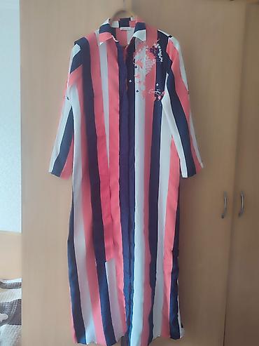 Платье рубашка свободного кроя с длинными рукавами,размер 42-44. Одевала 1 раз,покупала за 5000 с. Ткань классная на лето 👍Турецкая, подойдёт для кормящим .На рубашке имеется вышивка в виде цветов и надпись, добавляющая изюминку. Застегивается на пуговицы.