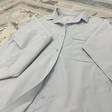Женская рубашка на пуговицах, светло‑голубой цвет.