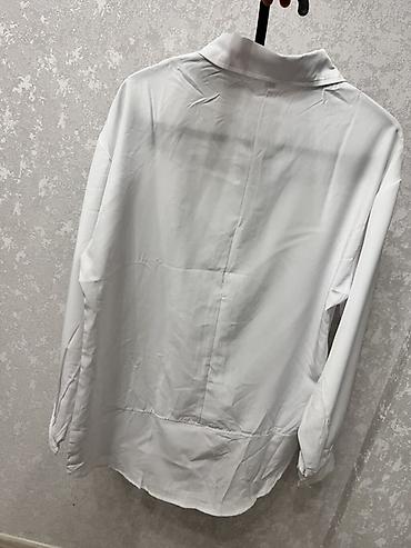 Белая женская рубашка оверсайз - Бренд: XL+ Fashion (на ярлыке указано “XL”). - Свободный прямой крой с удлинённой спинкой. - Застёжка на пуговицы спереди. - Вариант 1: стойка-воротник, два наклад...