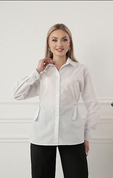 Белая женская рубашка-оверсайз с длинным рукавом 54-68р ( лён Сантана) 25 шт по 500 сом - Классический отложной воротник - Застёжка на ряд пуговиц спереди - Свободный прямой крой, комфортная посад...