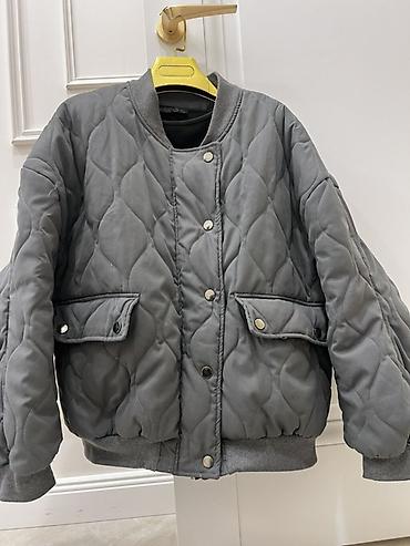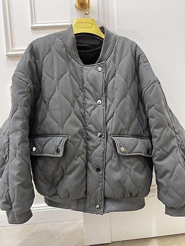 Акция!!! Серый женский бомбер/куртка на кнопках. - Прямой свободный крой с пониженной линией плеча - Застёжка на металлические кнопки по центру - Высокий ворот без капюшона - Два накладных передни...