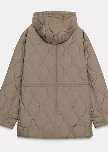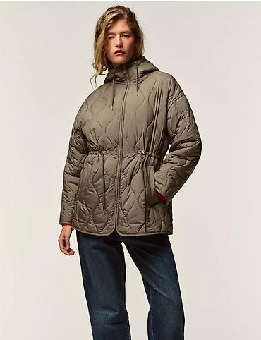 Стеганая женская куртка с капюшоном, цвет – тауп/хаки.