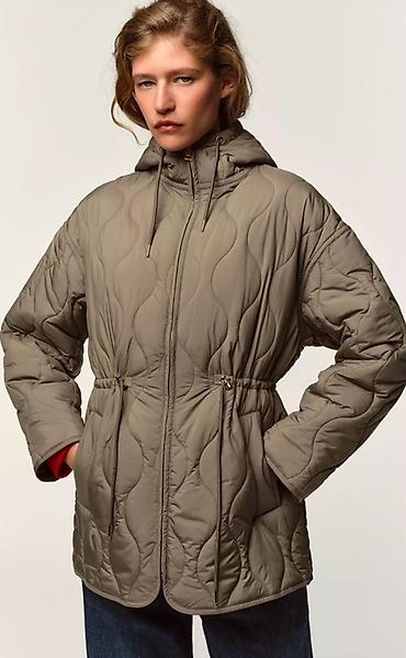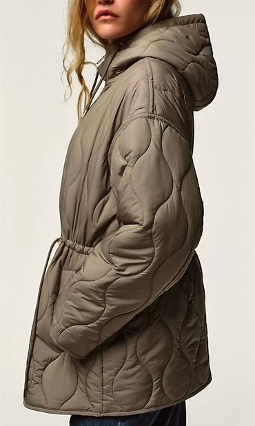 Стеганая женская куртка с капюшоном, цвет – тауп/хаки. Размер L