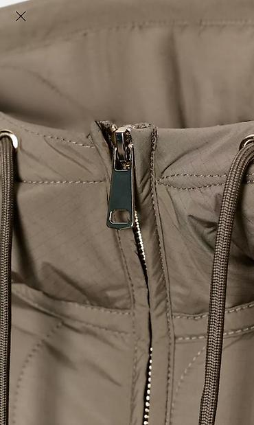 Пальто с высоким воротником, регулируемым капюшоном на шнуровке и длинными рукавами. Регулируемая талия на шнуровке. Прорезные передние карманы. Застежка на молнию спереди.