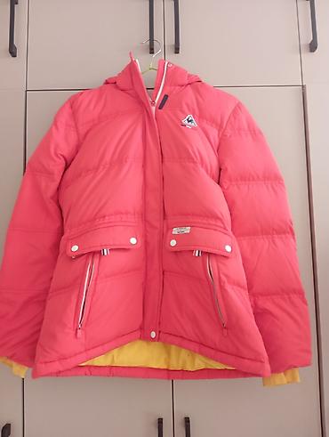 Зимняя утеплённая куртка с капюшоном, кораллово‑розового цвета. Корейская куртка б/у.