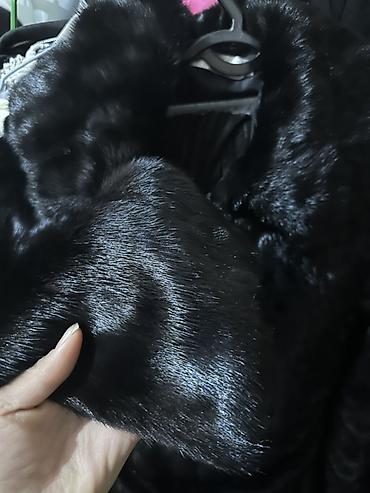 Длинная женская шуба из натурального меха норки, цвет глубокий черный.