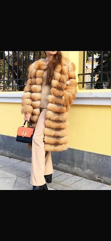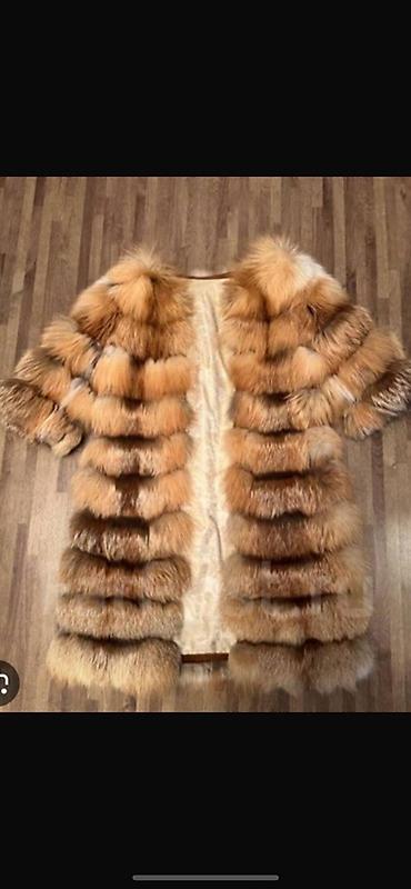 Шуба из натурального меха лисы, теплые рыже-золотистые тона с темными