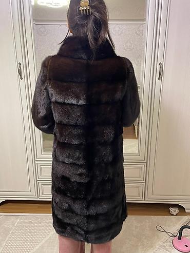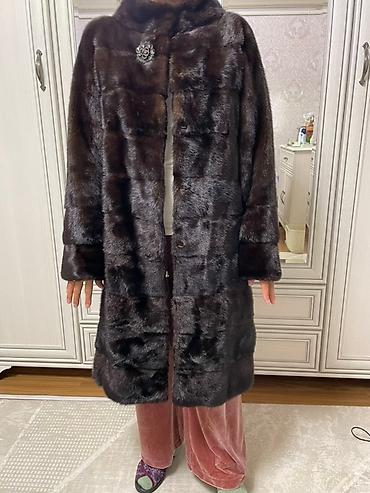 Шуба из натурального меха норки, темно-шоколадный оттенок, длина 110 см, по турецким стандартам 40 рамер