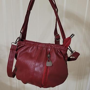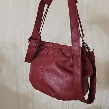 Новая кожаная женская сумка через плечо, компактная, бордового цвета.