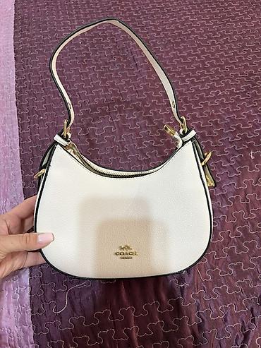 Сумка COACH - Модель: багет/shoulder bag с верхней молнией - Материал: фактурная натуральная кожа (pebbled) - Цвет: молочно‑белый (айвори) - Фурнитура: металл под серебро, цепочная короткая ручка...