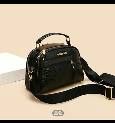 1) Компактная черная сумка с тиснением под рептилию:
