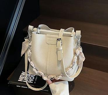 4) Кремово-бежевая сумка-бокс — 1000 сом: