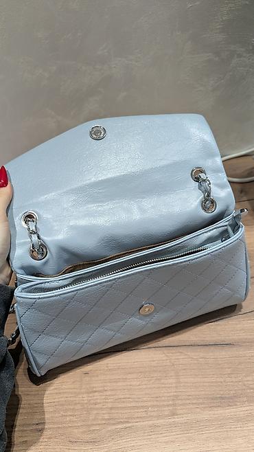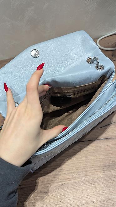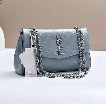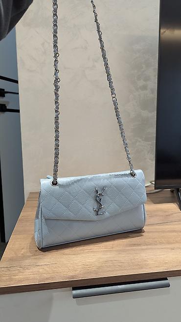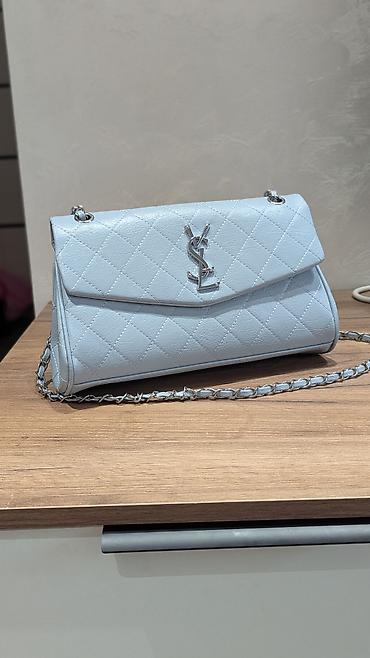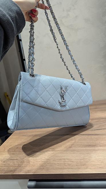 Сумка на цепочке реплика люксового бренда YSL , светло-голубого цвета.