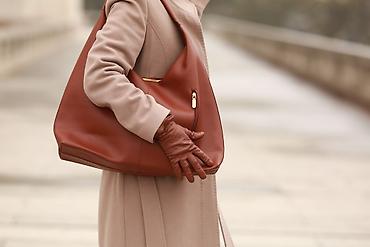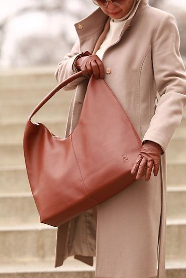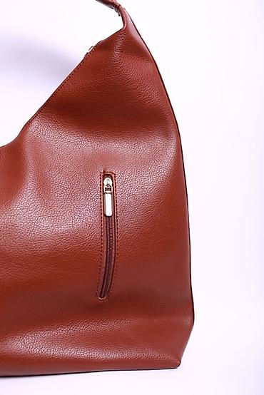 Сумка-хобо большого размера из мягкой текстурированной эко-кожи в тёплом терракотовом оттенке.