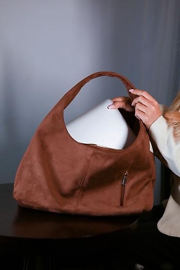 Замшевая сумка-хобо с двумя ремнями - Материал: мягкая натуральная замша, подкладка из текстиля - Фурнитура: металл цвета хром, надёжная молния по верхнему краю - Комплектация ремней: - Короткая...