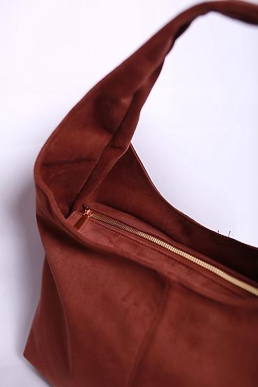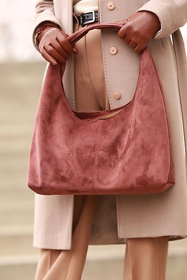 Сумка-хобо из мягкой замши (эко-замша), терракотово-розовый оттенок.