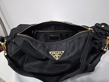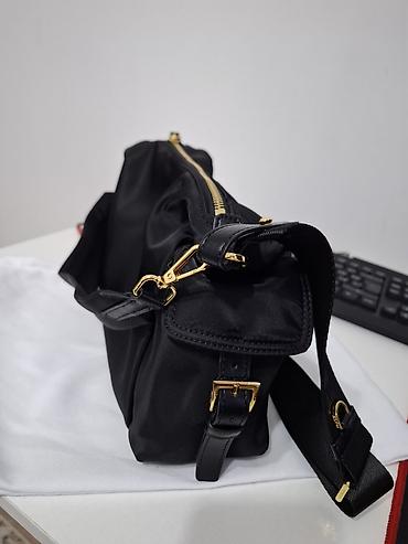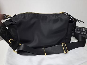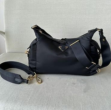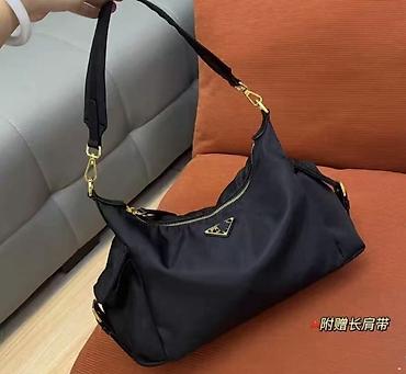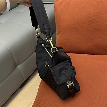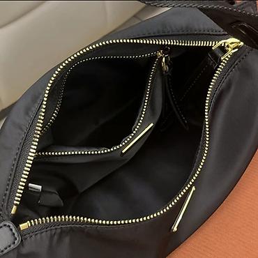 Сумка-хобо из чёрного нейлона с золотистой фурнитурой. Особенности: -