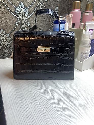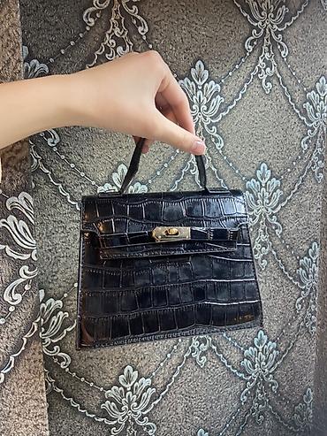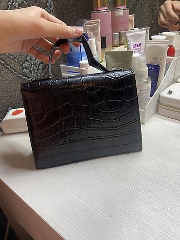Мини-сумка с верхней ручкой, черная, под кожу крокодила.