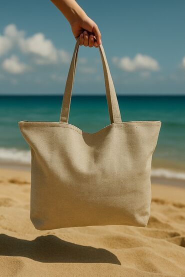 Пляжная сумка с длинными ручками. На сумке изображены горы и надпись