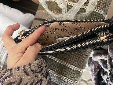 - Внутри одно отделение с фирменной подкладкой с принтом «S», другое — с кармашками для карт и мелочей.