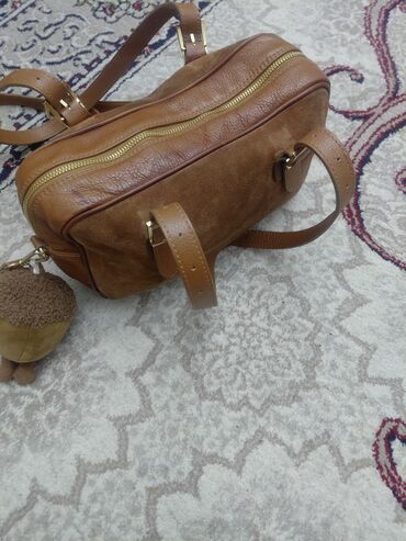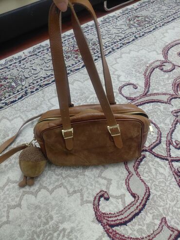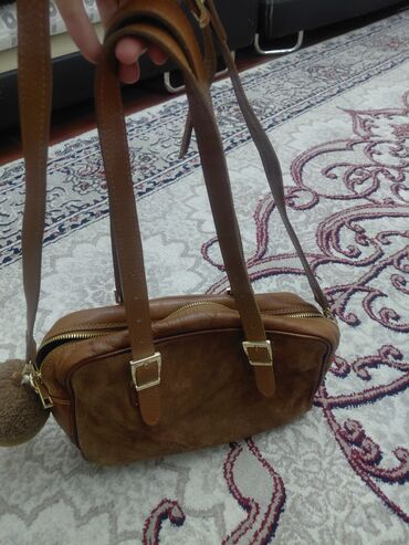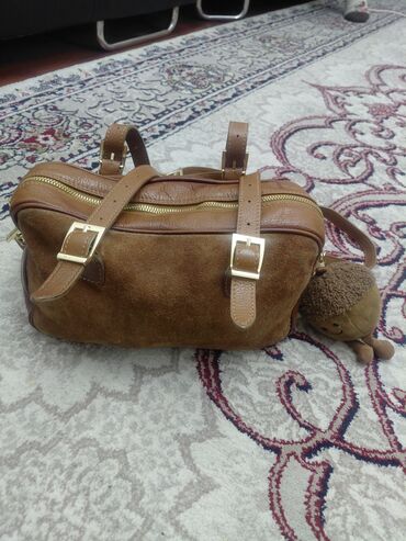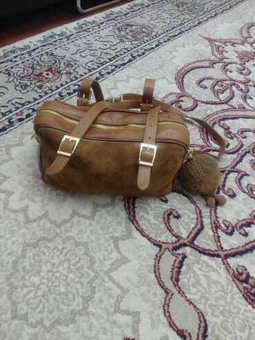 - Материалы: сочетание гладкой фактурной кожи и замши в тёплом коричневом оттенке; фурнитура под золото.