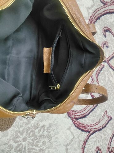 - Внутри: чёрная текстильная подкладка, боковой карман на молнии и открытый карман.
