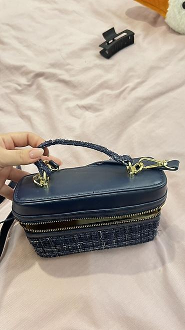 Стиль: универсальный повседневный/выходной аксессуар; легко сочетается с денимом, пальто и лаконичными платьями. Цвет: темно-синий с белыми акцентами на ткани.