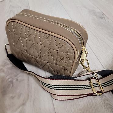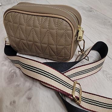 Компактная женская сумка-кроссбоди кожаная - Цвет: тёплый тауп