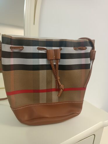 Женская сумка-мешок (bucket bag) с фирменным клетчатым узором.