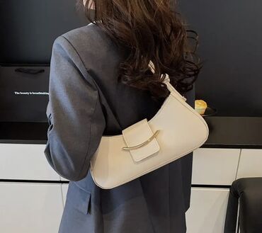 Стильная женская сумка-багет светло-бежевого цвета, идеально подходящая для повседневного использования или дополнения вечернего образа. Сумка имеет одно основное отделение и застежку на магнитную кнопку, скрытую под декоративной пряжкой золотистого цвета. Регулируемый ремешок позволяет носить ее как на плече, так и в руке. Компактный размер делает ее удобной для хранения необходимых мелочей.