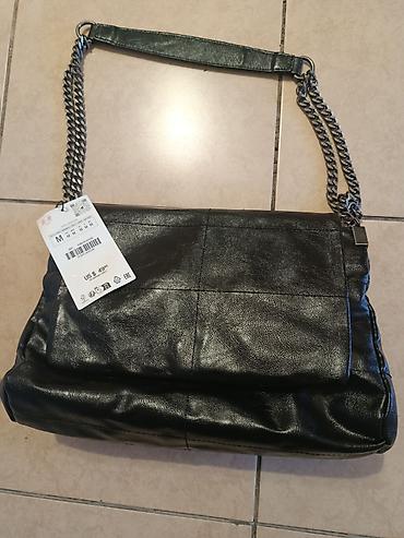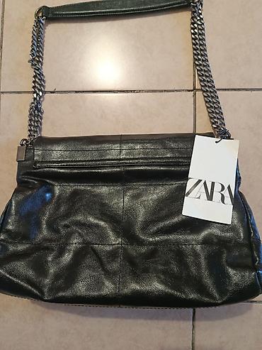 Сумка ZARA, черная, из мягкого кожзаменителя с легким глянцем. Модель на плечо с двойной цепочкой цвета никель и кожаной накладкой на ручке для удобства. Фронтальный клапан на магнитной кнопке.