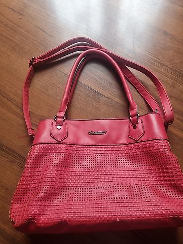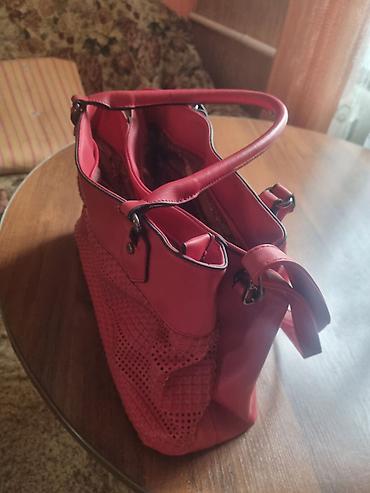Большая женская сумка-тоут красного цвета. - Формат: объемный тоут с мягкими складками по бокам - Материал: визуально — матовая искусственная замша/нубук с глянцевыми кожаными ручками - Ручки: две...