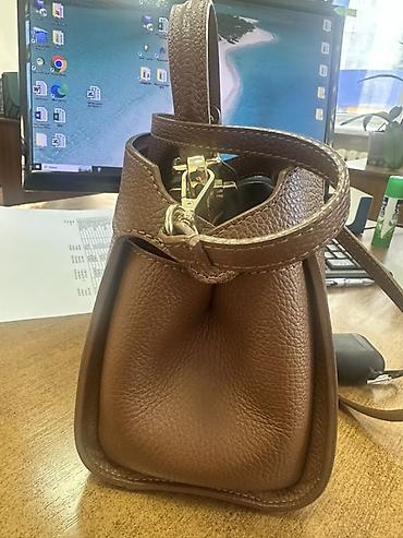 Миниатюрная женская сумка-тоут из зернистой коричневой натуральной кожи.
