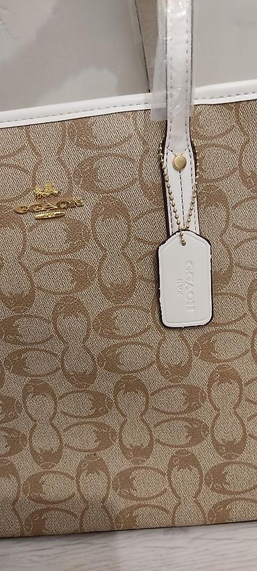 - Материал: плотный кожзам/коутед-кэнвас с фирменным монограммным принтом по всему корпусу; светлая окантовка и ручки