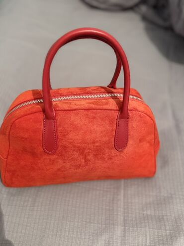 Сумка-тоут/баул в ярком оранжево-красном оттенке.