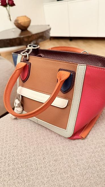 Сумка Longchamp, компактная модель-тоут из натуральной кожи в колор-блоке.