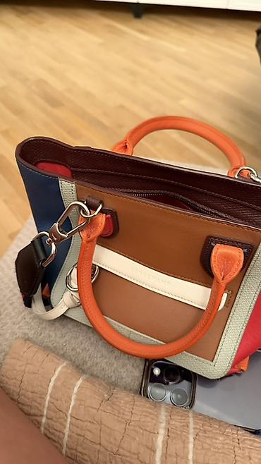 - Цвета: карамельный, терракотово-оранжевый, белый/молочный, темно-синий, бордовый, розово-коралловый; контрастные кожаные накладки и канты.