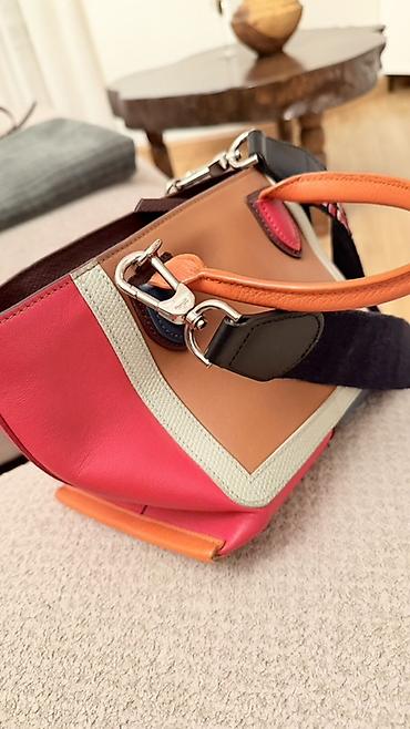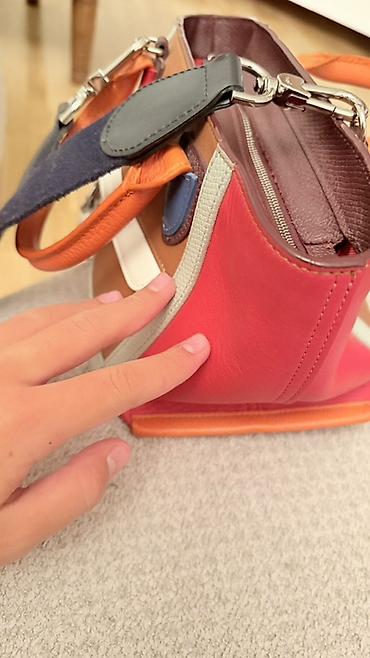 - Стиль: яркий колор-блок, сочетается с повседневными и смарт-кэжуал образами, можно носить в руке или через плечо.