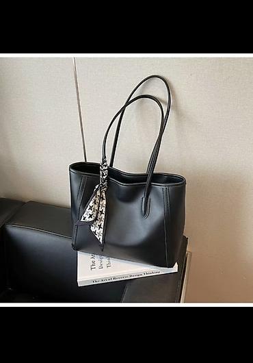 Сумка-тоут из искусственной кожи, черная - Формат: вертикальная