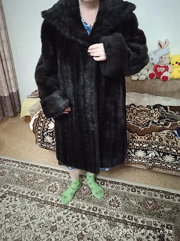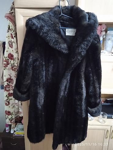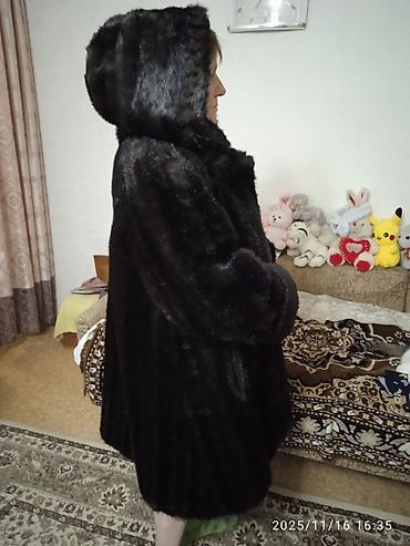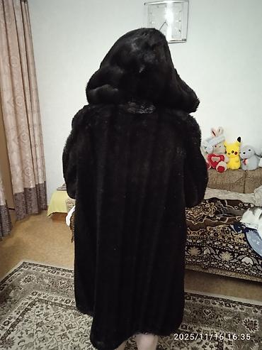 Шуба из темного меха с капюшоном б.у ,в отличном состоянии.