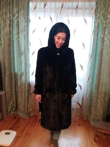 Шуба, Норка, Длинная модель, С капюшоном, L